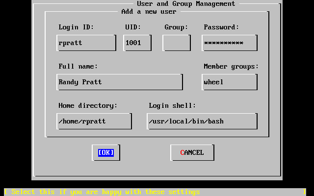 Choosing [ Yes ] and pressing Enter will bring the machine up on the network and be ready for use. However, this does not accomplish much during installation, since the machine still needs to be rebooted.