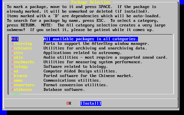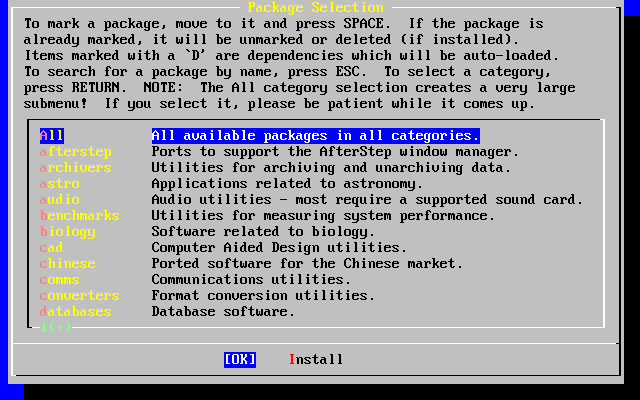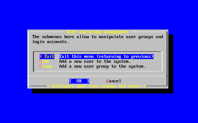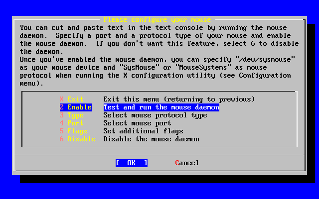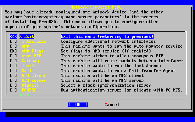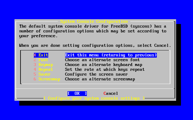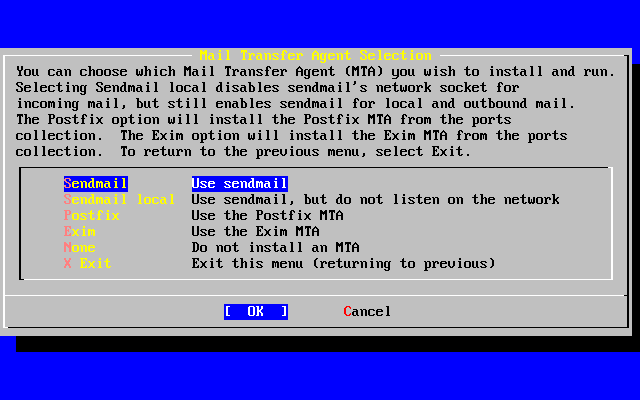 Configuration of various options follows the successful installation. An option can be configured by re-entering the configuration options before booting the new FreeBSD system or after installation using sysinstall (/stand/sysinstall in FreeBSD versions older than 5.2) and selecting Configure.