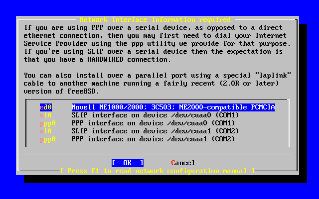 If you previously configured PPP for an FTP install, this screen will not display and can be configured later as described above.