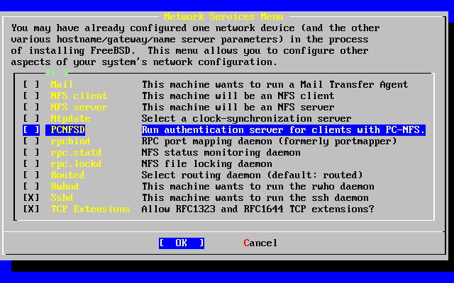 These services can be enabled after installation by editing /etc/inetd.conf with your favorite text editor. See Section 23.2.1 for more information.
