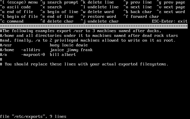 Use the instructions to add the actual exported filesystems now or later using a text editor of your choice. Note the file name/location at the bottom of the editor screen.